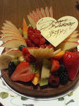 ワタクシめはケーキのスポンジが苦手という欠点がございまして、お誕生日ケーキはタルトにしてくれと常に言うております。今回はおとといから予約しておいたので例年より一回り大きいタルト・オ・フリュイ!おうちの近くの人気ケーキ店、水曜は普段ならおやすみなんですが、今日はホワイトデーなのでやってるとのこと…「お誕生日なんですっ」と予約したケーキはしかし、ちょっぴりホワイトデー仕様でございます。だってチョコプレートがホワイトチョコ(っつーか堂々と本名書いてありますがな(笑))。